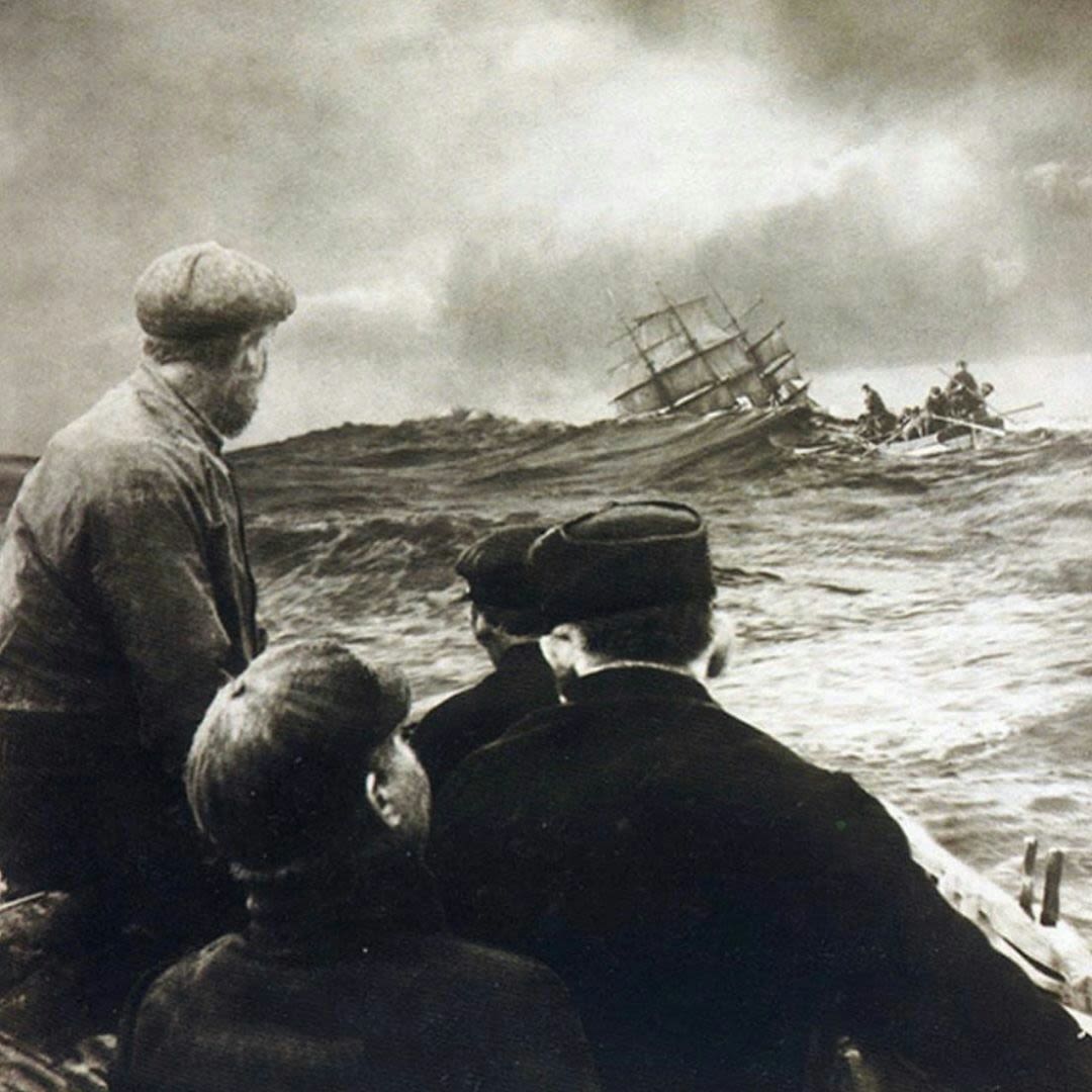 Esto no es una pintura. La foto fue tomada en 1911 por Francis James (FJ) Mortimer FRPS (1874) un pionero de la fotografía pictórica. El mar su tema favorito, capturó el naufragio Arden Craig, un barco de trigo de tres mástiles que se estrelló en rocas de nueve pies de agua después de que el capitán se desorientara en una niebla pesada.